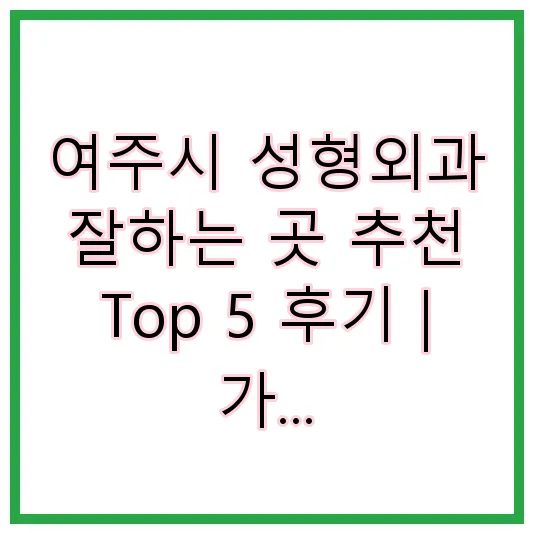 📌 여주시 성형외과 잘하는 잘하는 곳 5 추천